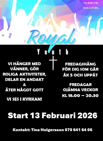 Royal Youth Fredagshäng är för de lite äldre barnen/tonåringarna. Vi håller mestadels till i Filadelfias lägenhet och i kyrkans källare (i samma byggnad).